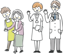 退院前カンファレンス、担当者会議など患者様にとって大切な話し合いの場には、積極的に医師及び看護師が参加いたします。お気軽にお声かけください。